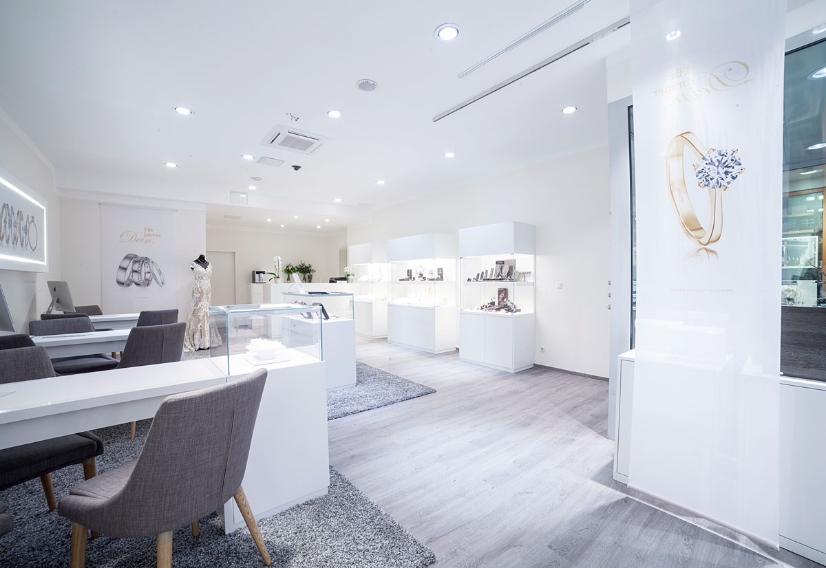 Exklusive Verlobungsringe und Trauringe stehen zur Anprobe für Sie zur Verfügung. Mit exzelltener Beratung finden wir so gemeinsam mit Ihnen Ihre Traumringe.