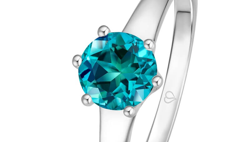 Unser Edelstein Viridian variiert in einzigartigen Blau- und Grüntönen. Seine unverwechselbare Schönheit steht für Balance und Harmonie. Es handelt sich um einen der seltensten Farbtöne, die wir verarbeiten dürfen.
